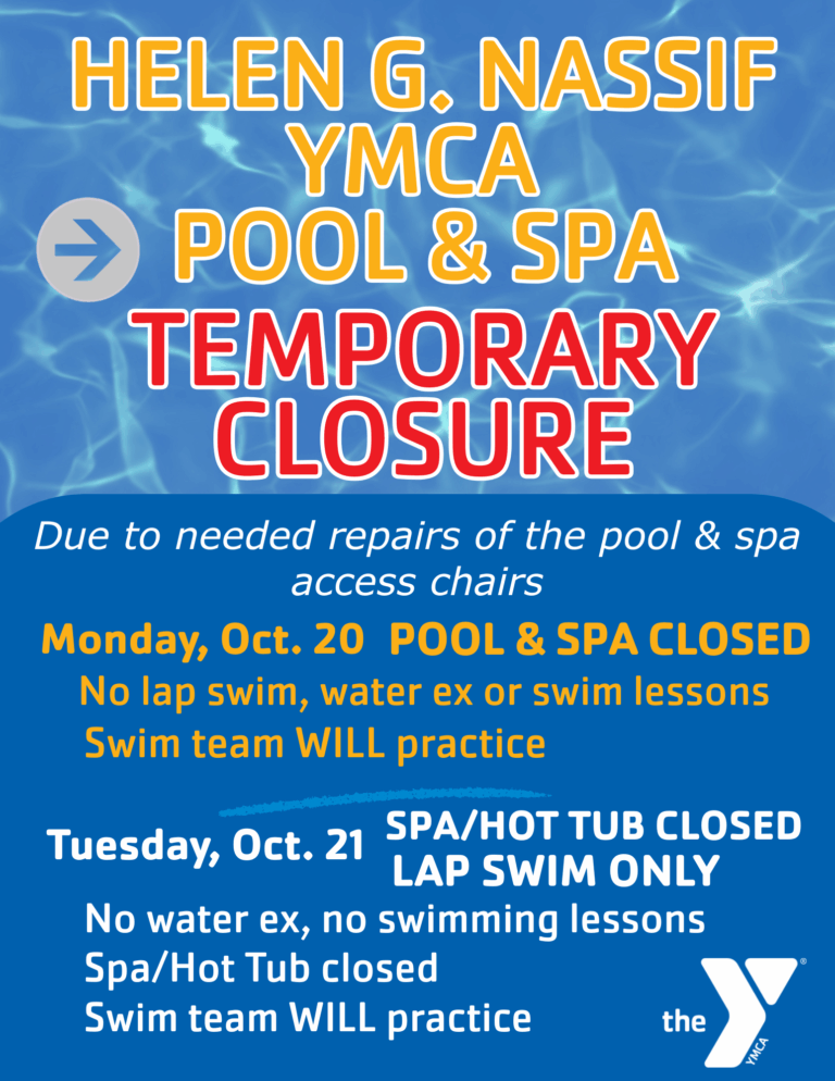 - Hot Tub will NOT be available for use when the pool is scheduled for any other YMCA program (water ex classes, swim team practices, or swimming lesson classes).